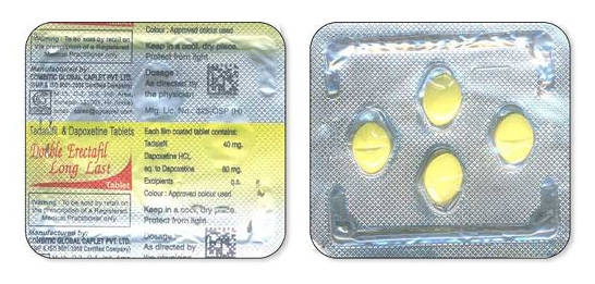 - Formen & Dosierungen: Tabletten (20 mg Tadalafil + 60 mg Dapoxetine).